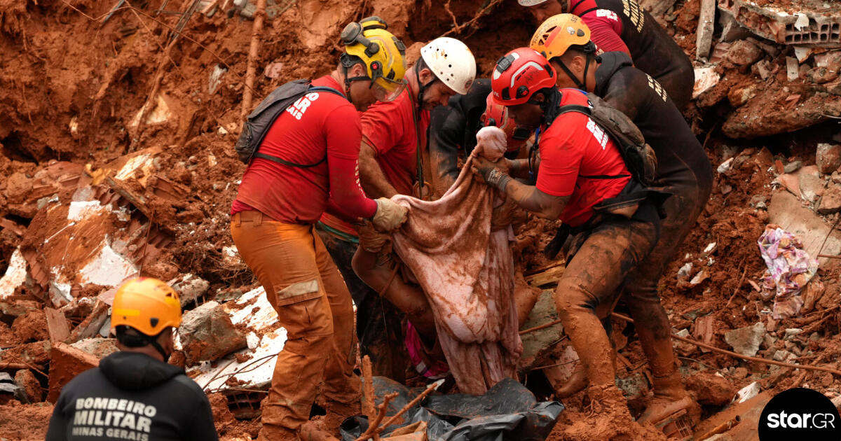 Τρεις πυροσβέστες έβγαλαν το πτώμα άνδρα από τη λάσπη εν μέσω των συντριμμιών δώδεκα σπιτιών που καταπλακώθηκαν από κατολίσθηση σε μια από τις περιοχές που χτυπήθηκαν πιο σκληρά. Η περιοχή αυτή βρίσκεται στο Πάρκο Μπουρνιέ, σε πλαγιά λόφου στη Ζουίζ τζι Φόρα, πόλη κάπου 540.000 κατοίκων σε κοιλάδα στην πολιτεία Μίνας Ζεράις, όπου οι νεκροί είναι τουλάχιστον 22.