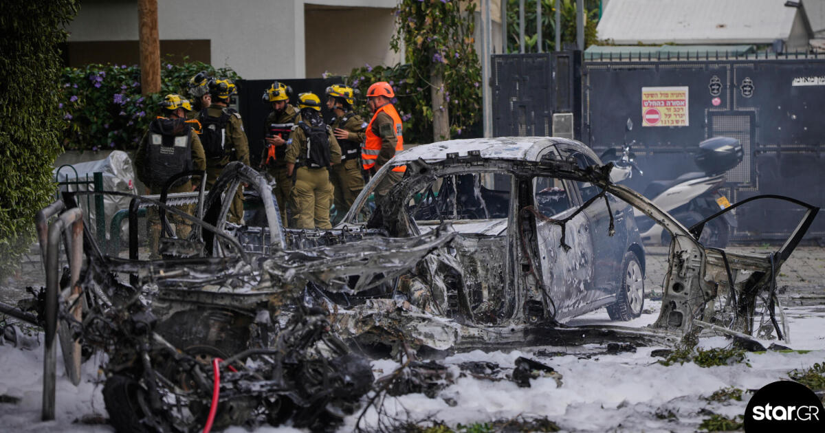 Αυτοκίνητα κάηκαν και ένα αναποδογύρισε σε προάστιο της περιφέρειας του Τελ Αβίβ, λόγω θραυσμάτων ιρανικών πυραύλων.