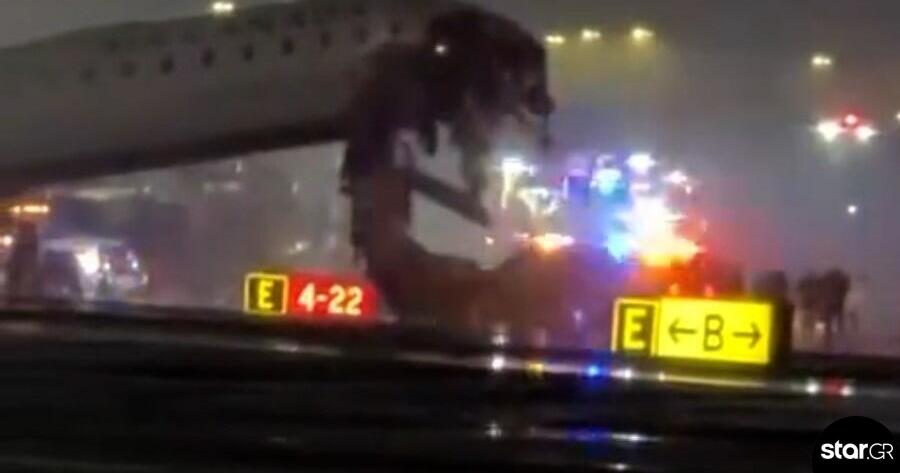 Εικόνες από το σημείο δείχνουν το μπροστινό μέρος του αεροσκάφους να έχει ανασηκωθεί και το πιλοτήριο να έχει υποστεί σοβαρές ζημιές.