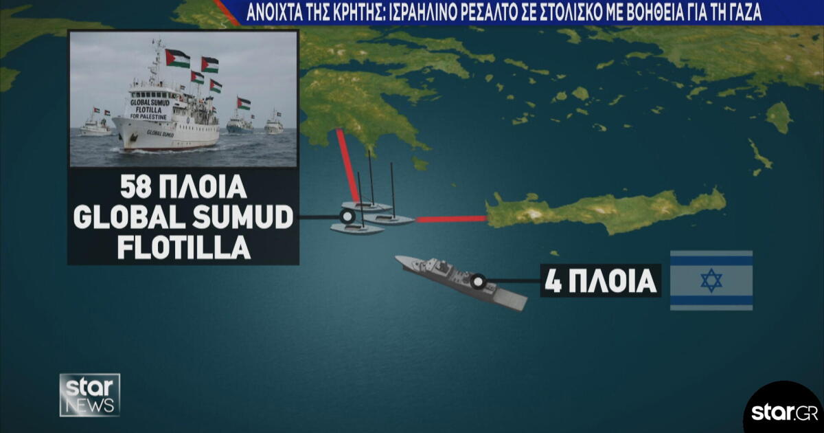 Σκηνικό έντασης εκτυλίχθηκε σε διεθνή ύδατα, ανοιχτά της Κρήτης, όταν ισραηλινές δυνάμεις προχώρησαν σε επιχείρηση ακινητοποίησης και ρεσάλτου σε σκάφη στολίσκου που κατευθυνόταν προς τη Γάζα μεταφέροντας ανθρωπιστική βοήθεια.