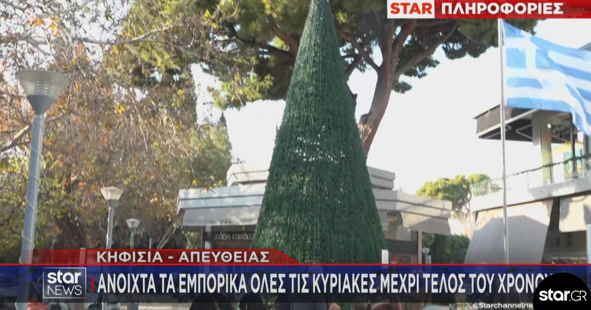 Συγκεκριμένα, είναι ανοιχτά σήμερα Κυριακή 14 Δεκεμβρίου και θα είναι ανοιχτά στις 21 Δεκεμβρίου και στις 28 Δεκεμβρίου, στο πλαίσιο του εορταστικού ωραρίου που έχει ξεκινήσει να εφαρμόζεται από 11/12/2025 στην Αθήνα και από σήμερα 13/12/2025 στη Θεσσαλονίκη.