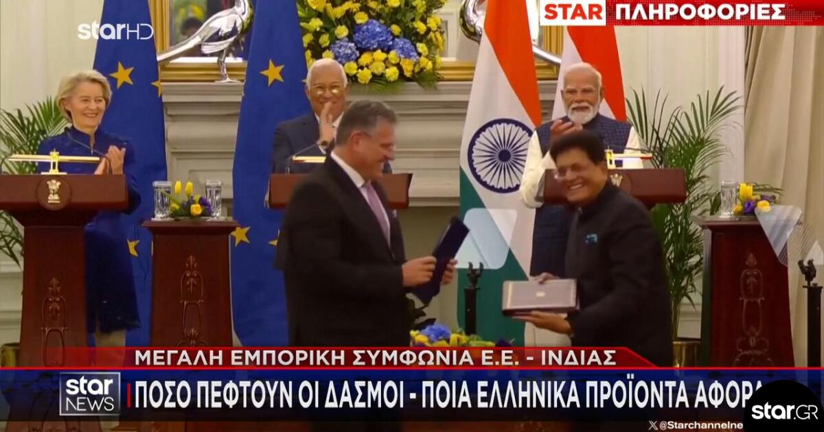Έπειτα από σχεδόν 20 χρόνια αδιεξόδου ανάμεσα σε Βρυξέλλες και Νέο Δελχί, οι δύο πλευρές έκαναν το τελικό βήμα, σε μια προσπάθεια να απαντήσουν και στην πολιτική επιβολής δασμών του Αμερικανού προέδρου, Ντόναλντ Τραμπ.