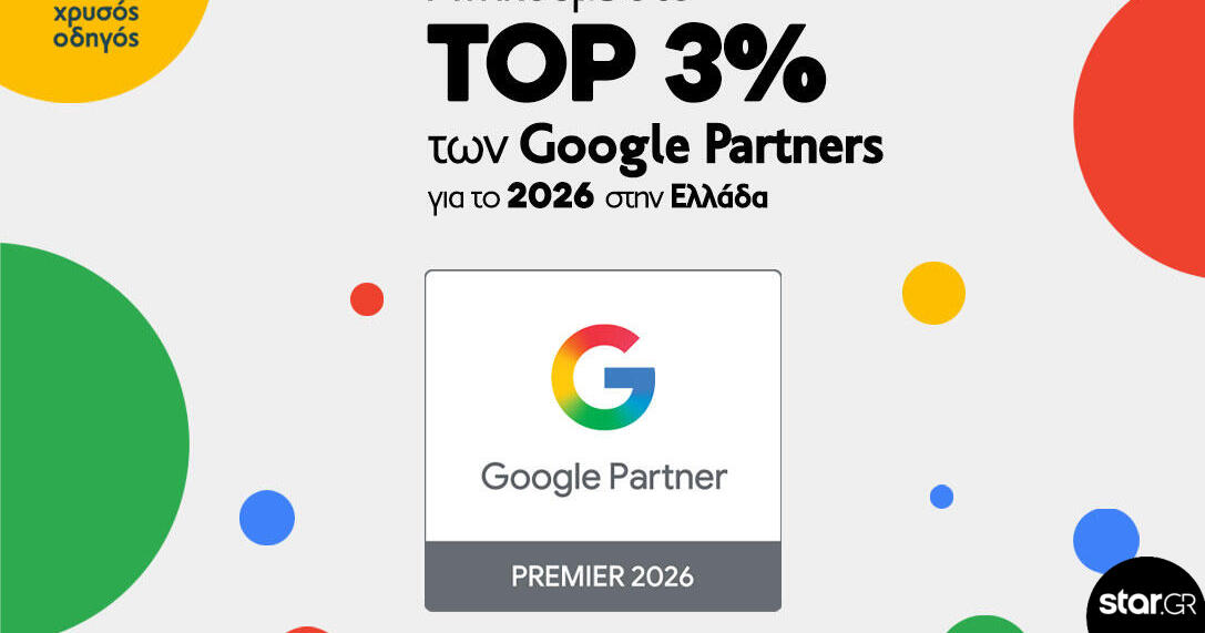 Ο Χρυσός Οδηγός ανακοινώνει ότι διακρίθηκε ως Google Premier Partner για το 2026, επιβεβαιώνοντας τη σταθερή του προσήλωση στην υψηλή απόδοση, στην τεχνογνωσία στη διαχείριση καμπανιών Google Ads και στη διαρκή επένδυση στην ανάπτυξη δεξιοτήτων της ομάδας του.