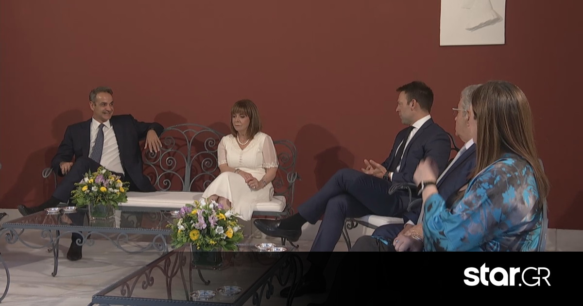 Η συζήτηση στο αίθριο ξεκίνησε όταν ο πρωθυπουργός Κυριάκος Μητσοτάκης ρώτησε τον αρχηγό της αξιωματικής αντιπολίτευσης πώς πηγαίνουν οι προετοιμασίες για τον γάμο, με τον κ. Κασσελάκη να απαντά πως «όλα βαίνουν καλώς». «Η φιλόξενη Κρήτη σας περιμένει» σχολίασε ο κ. Μητσοτάκης, ενώ στη συζήτηση παρενέβη και ο - επίσης Κρητικός – πρόεδρος του ΠΑΣΟΚ Νίκος Ανδρουλάκης.