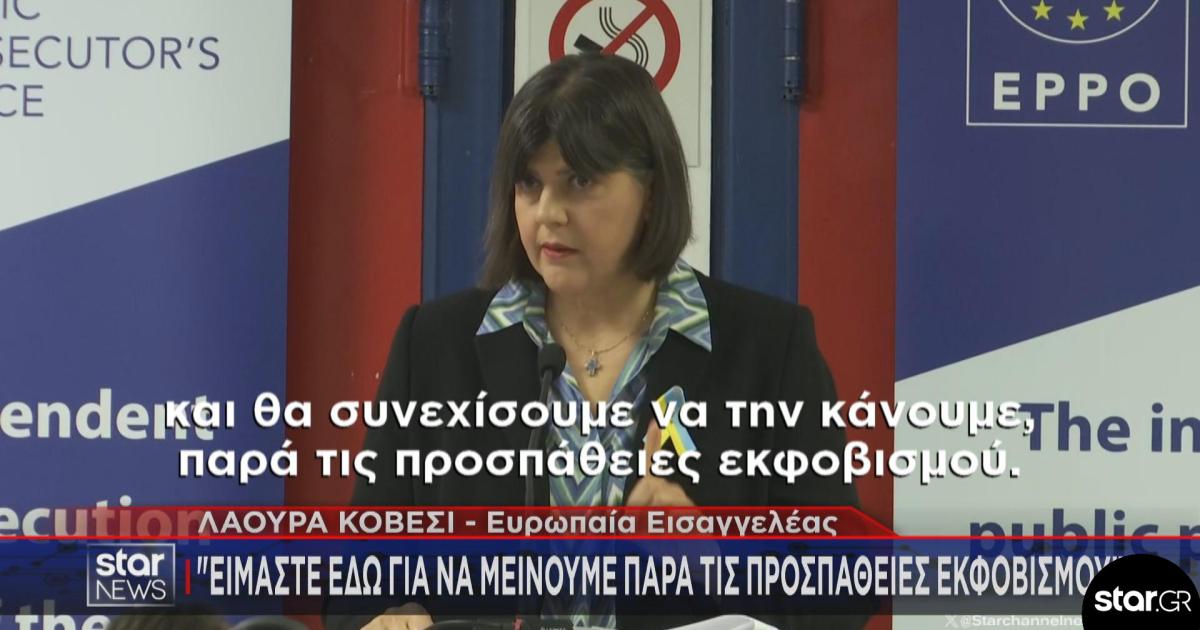 «Είμαστε εδώ για να μείνουμε. Κάνουμε τη δουλειά μας και θα συνεχίσουμε να την κάνουμε, παρά τις προσπάθειες εκφοβισμού» τόνισε η Ευρωπαία Εισαγγελέας.