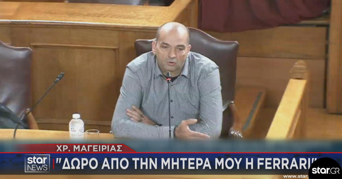 Ο κ. Μαγειρίας εξήγησε ότι η πολυσυζητημένη Ferrari – την οποία προβάλλει συχνά η σύντροφός του στα social media – ήταν δώρο της μητέρας του το 2004, μετά από αποζημίωση λόγω απαλλοτρίωσης οικοπέδου: