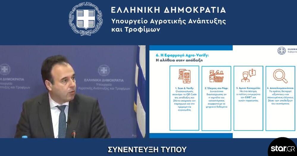 Από την πλευρά του ο υπουργός Ψηφιακής Διακυβέρνησης Δημήτρης Παπαστεργίου εξηγεί ότι με το καινοτόμο σύστημα Εθνικής Ιχνηλάτησης καταγράφεται τι συμβαίνει με τα ελληνικά προϊόντα.