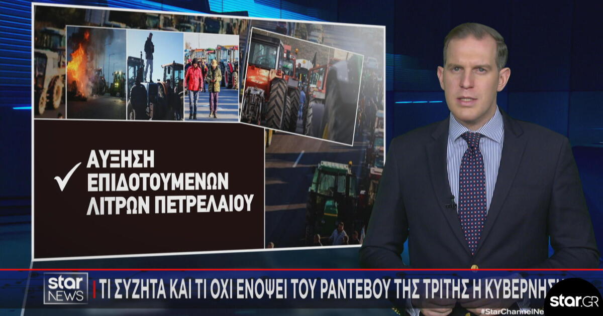Σύμφωνα με το ρεπορτάζ του πολιτικού αναλυτή του Star Γιώργου Ευγενίδη, αντιτικείμενο της συζήτησης θα είναι η ρύθμιση για το ρεύμα, ενώ η κυβέρνηση συζητά την αύξηση των επιδοτούμενων λίτρων πετρελαίου, αλλά και θεσμικά ζητήματα του πρωτογενούς τομέα.