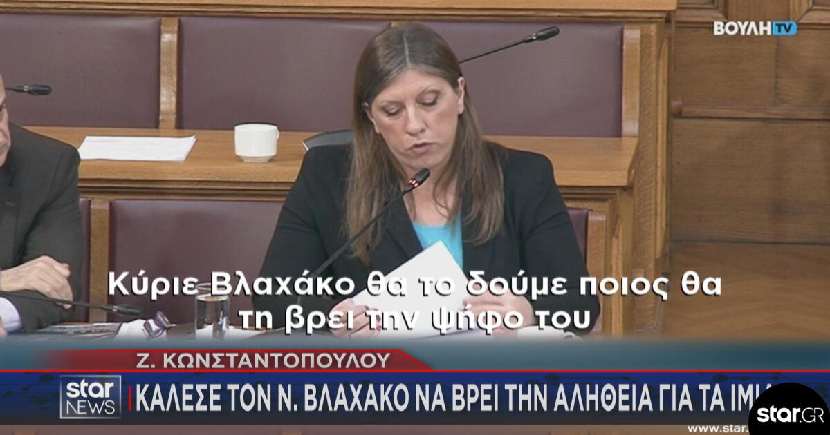 Ο διάλογος που έγινε μεταξύ Ζ. Κωνσταντοπούλκου και Ν. Βλαχάκου ήταν ο εξής:
