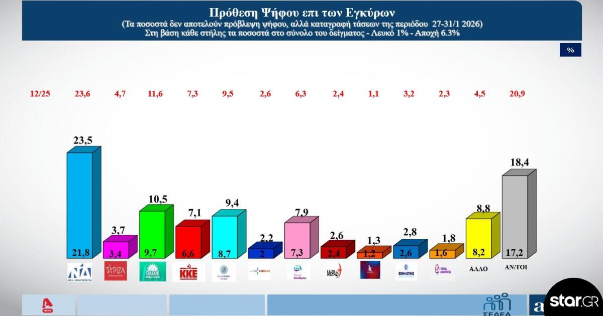 Αναλυτικά τα ποσοστά των κομμάτων στην πρόθεση ψήφου :