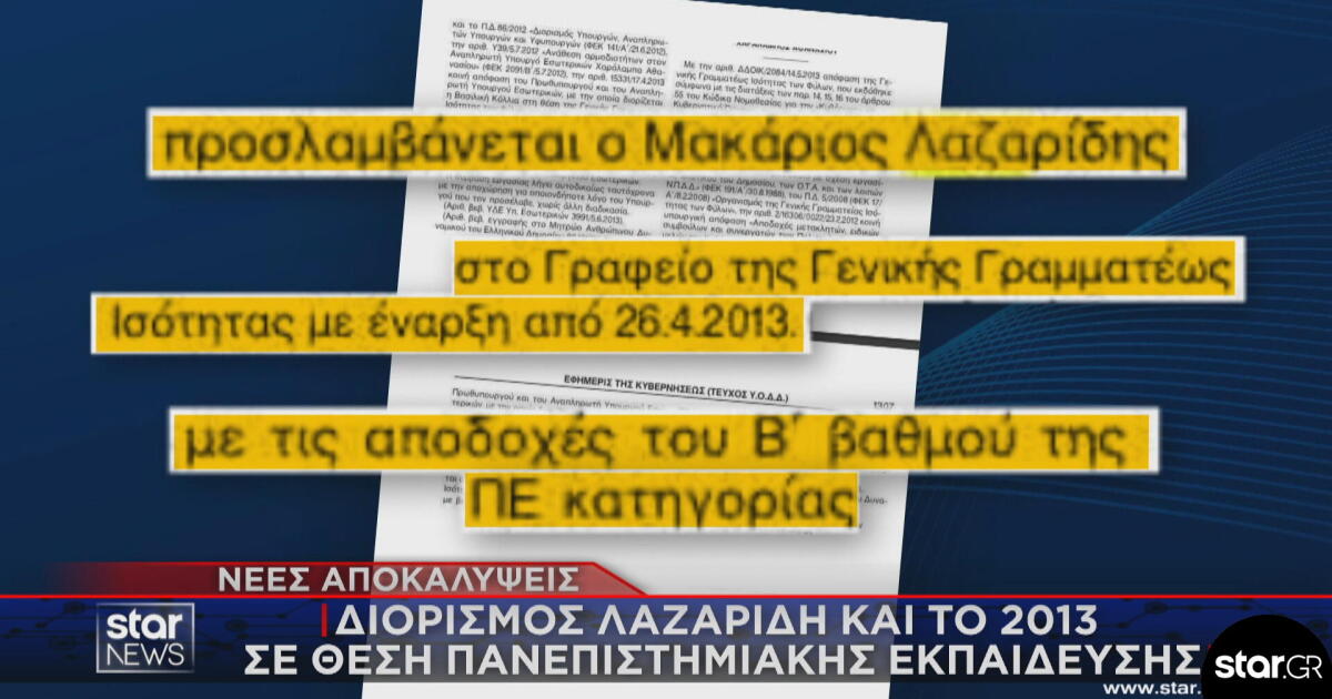 Εξηγήσεις από Μ. Λαζαρίδη για τον διορισμό χωρίς πτυχίο ΑΕΙ
