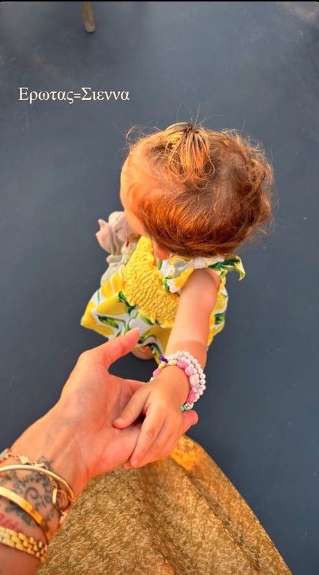 Το απόγευμα της Τρίτης, η γλυκιά μαμά ανέβασε μια πολύ τρυφερή φωτογραφία όπου βλέπουμε τη Σιέννα να φορά ένα φορεματάκι στις αποχρώσεις του κίτρινου, ενώ δε λείπουν και τα παιδικά βραχιολάκι.