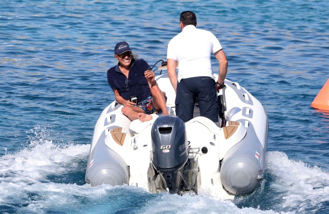 Μέσα από φωτογραφίες που εξασφάλισε το NDP, βλέπουμε τον Ηλία Ψινάκη να καταφθάνει ευδιάθετος σε παραλία του νησιού με φουσκωτό σκάφος, και στη συνέχεια να περπατά και να κάθεται με την παρέα, που τον περίμενε στις ξαπλώστρες.