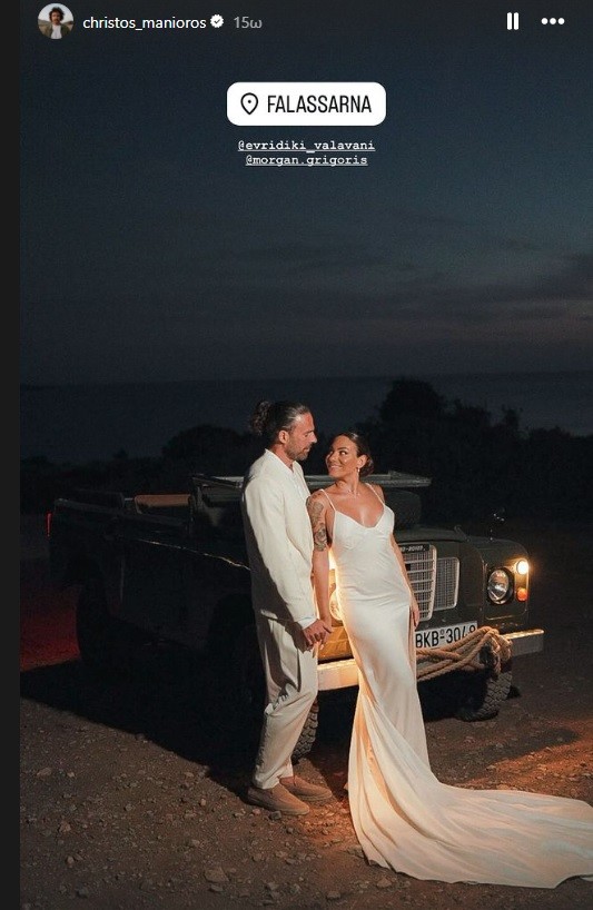 Στο μεταξύ, ο γαμπρός αναδημοσίευσε νέα στιγμιότυπα από τον γάμο του με την αθλητικογράφο, πριν λίγες ώρες. Πάντως, σε όλες τις φωτογραφίες οι νιόπαντροι δείχνουν πολύ ερωτευμένοι και ότι απόλαυσαν κάθε στιγμή του γάμου τους.