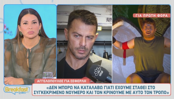 Τέλος, ο Γιώργος Αγγελόπουλος ρωτήθηκε και για τον Μάρκο Σεφερλή με τον ίδιο να απαντάει: «Έχω δει πολλές φορές τον Μάρκο κι έχω συνεργαστεί μαζί του… Ο Μάρκος Σεφερλής αποτυπώνει τη σάτιρα με τον δικό του τρόπο. Είναι άδικο για έναν άνθρωπο που είναι τόσα χρόνια στο χώρο, με το θέατρό του να είναι πάντα γεμάτο, ένας άνθρωπος που έχει γεμάτο το θέατρο και πίσω από τη σκηνή… Το έργο του με τα παιδιά είναι τεράστιο».