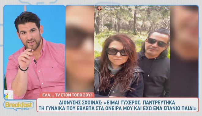 «Το ξέρεις όταν δε θα χωρίσεις κι όταν θα χωρίσεις, φαίνεται από την αρχή. Σίγουρα στην αρχή είναι ο έρωτας, ερωτεύεσαι το παιχνίδι... Μετά όταν βλέπεις ότι δε σου κάνει αυτό, χωρίζεις. Το κακό είναι να το βρεις στα 18 σου που δεν έχεις ζήσει πράγματα. Το να το βρεις στα 28 σου, 40 σου δεν υπάρχει ωραιότατο πράγμα το να το ζήσεις. Είναι φιλαράκι μου! Έχουμε εμπιστοσύνη ο ένας τον άλλον, δεν πέφτει στα μάτια μου», πρόσθεσε ο Διονύσης Σχοινάς.
