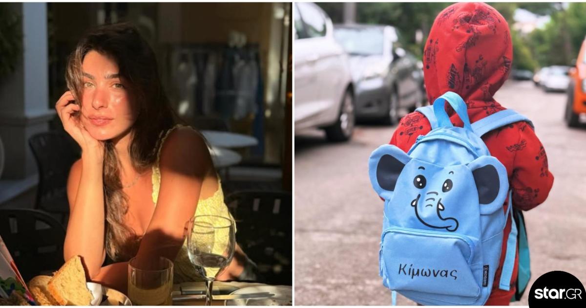 Στη φωτογραφία που μοιράστηκε στο instagram η ηθοποιός, ο μικρός Κίμωνας απεικονίζεται πλάτη φορώντας την υπέροχη τσαντούλα του με ελεφαντάκι και το όνομά του γραμμένο επάνω, ενώ είναι ζεστά ντυμένος με μακρύ παντελόνι και ζακετάκι ενόψει του βροχερού φθινοπωρινού καιρού.