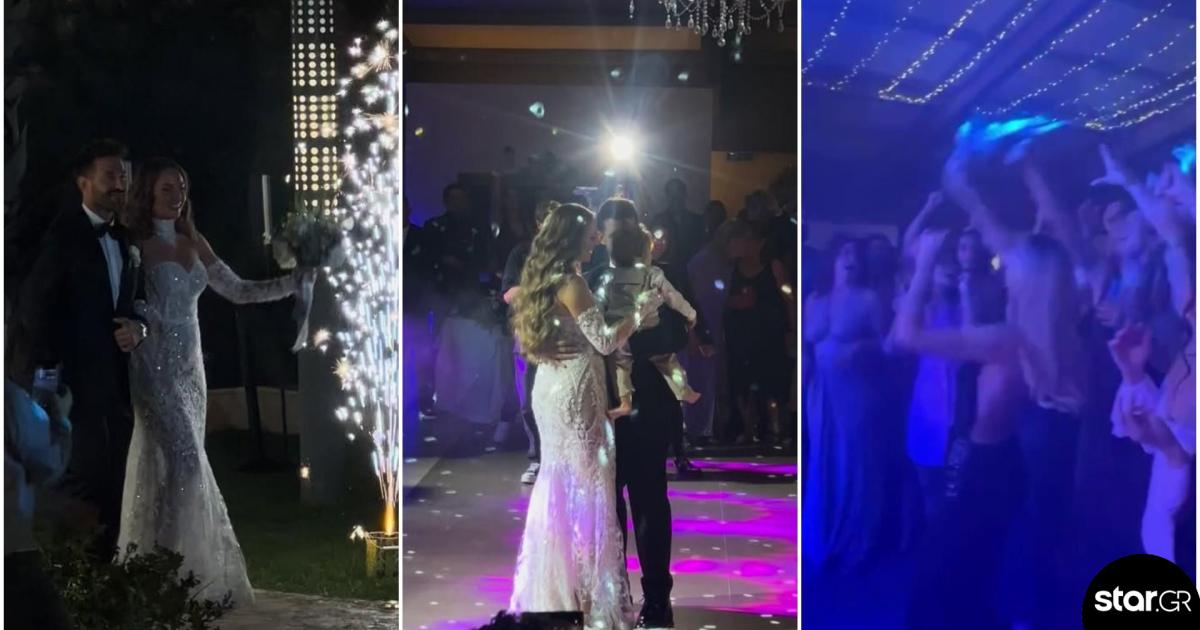 Το νιόπαντρο ζευγάρι έκανε είσοδο στον χώρο της δεξίωσης κι ακολούθησε ο πρώτος του χορός, με το τραγούδι του Γιάννη Πάριου «Δε θα χωρίσουμε ποτέ». Μία από τις πιο τρυφερές στιγμές της βραδιάς ήταν όταν το ζευγάρι πήρε αγκαλιά τον γιο του και χόρεψαν οι τρεις τους.