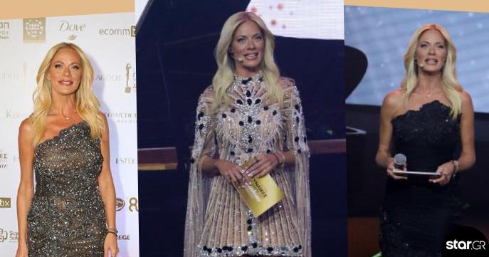 Η οικοδέσποινα της βραδιάς, Ζέτα Μακρυπούλια, έλαμψε τόσο στο κόκκινο χαλί όσο και πάνω στη σκηνή των βραβείων, κάνοντας τρεις εντυπωσιακές εμφανίσεις, όλες με την υπογραφή της σχεδιάστριας Έφης Παπαϊωάννου, σε συνδυασμό με τα κοσμήματα Escluso Jewelry by Elena Andreou.
