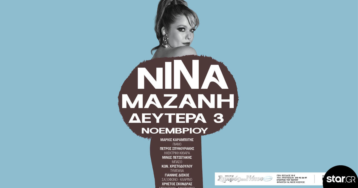 Μετά τα περσινά πολύ επιτυχημένα και πολυσυζητημένα live της, η Νίνα Μαζάνη επιστρέφει στο Club του Σταυρού του Νότου για ένα live γεμάτο ενέργεια, κέφι, υπέροχες ερμηνευτικές στιγμές και πολύ χορό!