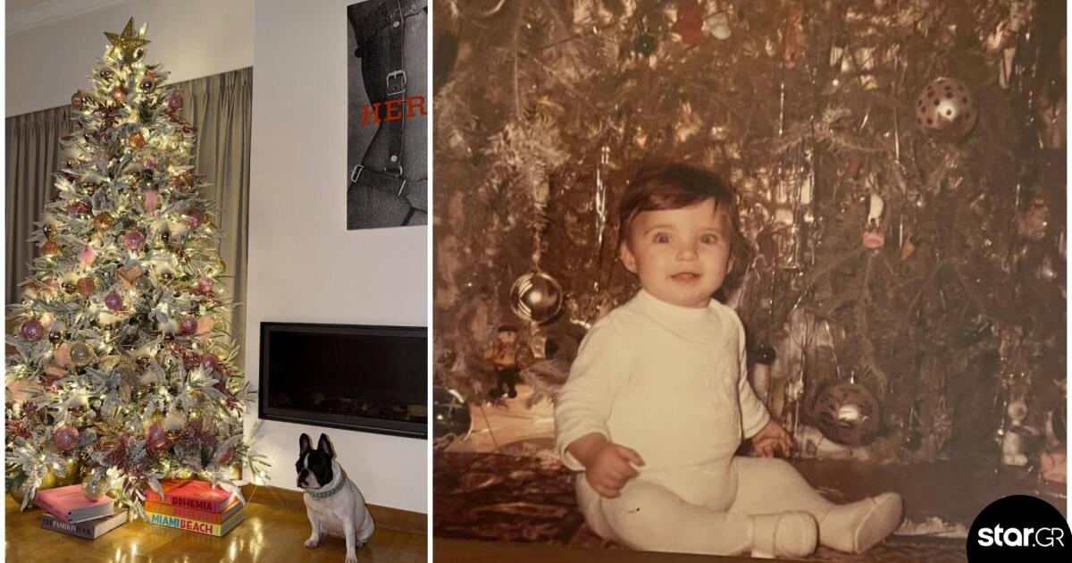 Η παιδική φωτογραφία της Κατερίνας Καινούργιου μπροστά από το χριστουγεννιάτικο δέντρο/ instagram