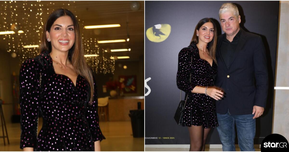 Η Σταματίνα Τσιμτσιλή επέλεξε ένα βελούδινο mini φόρεμα σε μωβ απόχρωση με ρομαντικά μοτίβα από μεταλλικές καρδιές, συνδυάζοντάς το με μαύρο καλσόν και διακριτικά κοσμήματα, ενώ ο Θέμης Σοφός διατήρησε την κλασική του κομψότητα με σκούρο σακάκι και denim παντελόνι.
