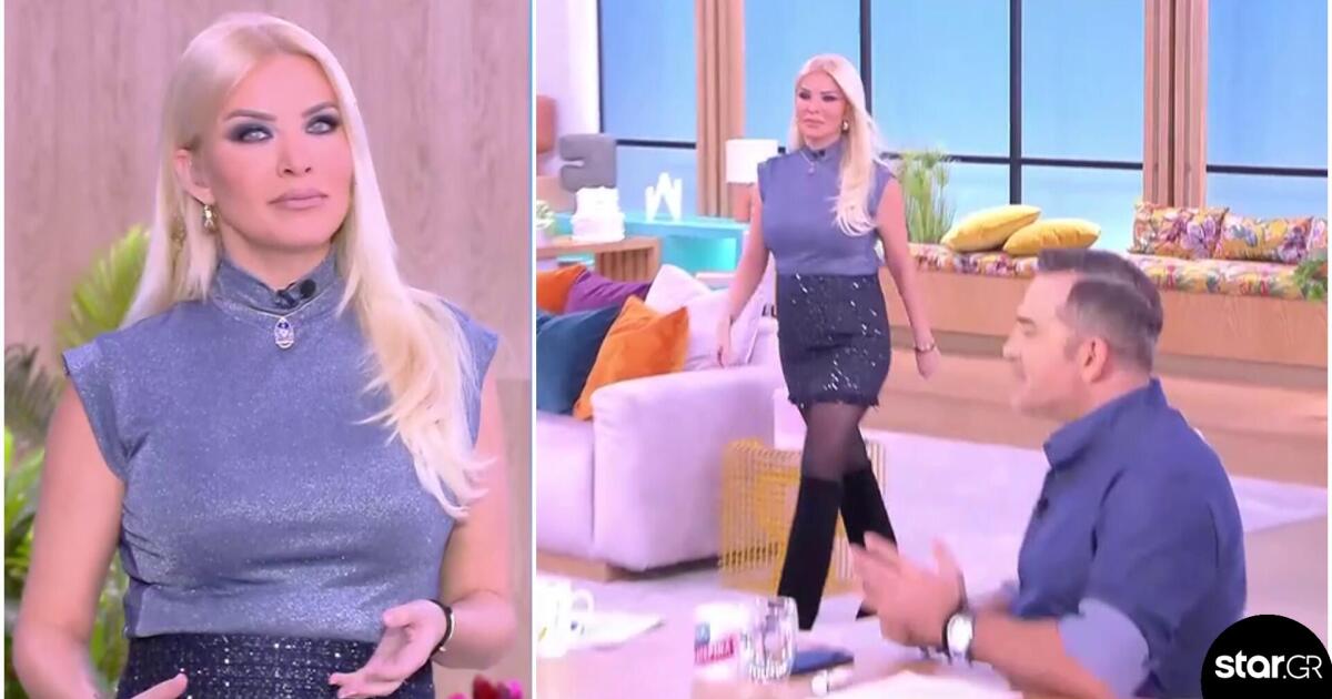 Εντυπωσιακή εμφάνιση έκανε η Κατερίνα Καινούργιου στη σημερινή της εκπομπή, φορώντας μίνι φούστα από παγέτες, αμάνικο ζιβάγκο και ψηλές μπότες.