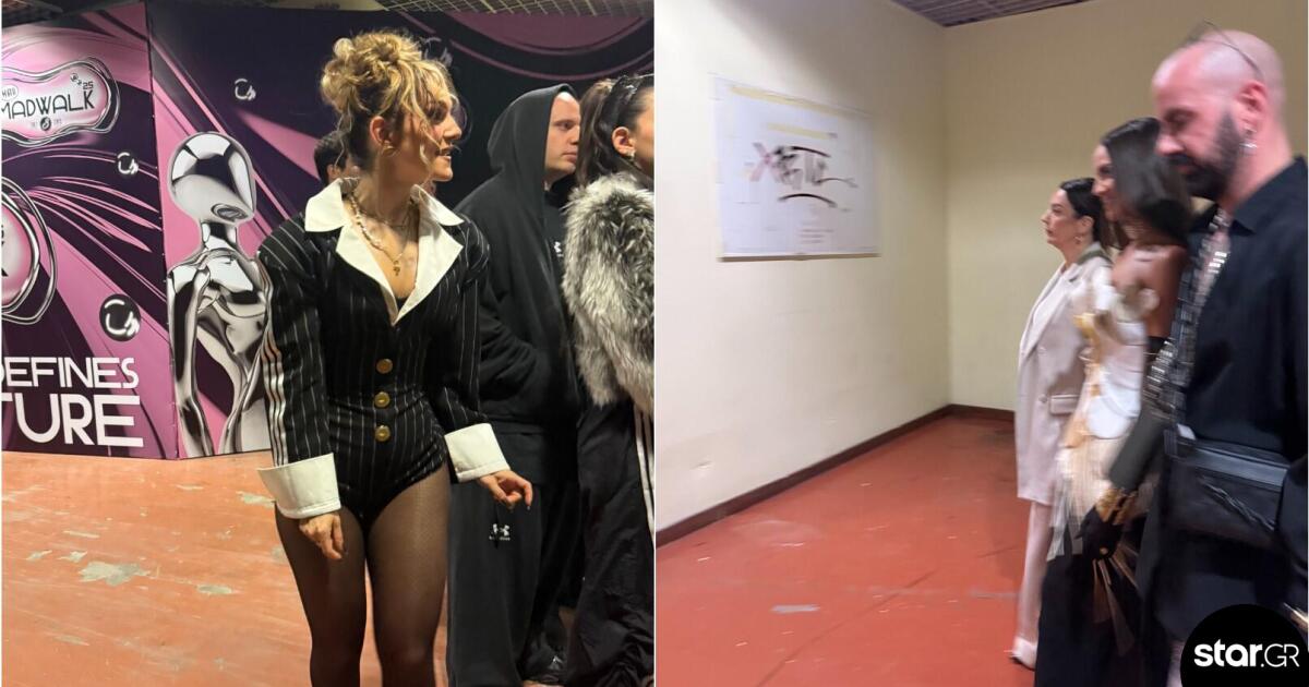 Εντυπωσιακή, συγκεντρωμένη και απόλυτα fashion-forward, ετοιμαζόταν να παραδώσει ένα performance που, όπως μας είπε, είχε δουλέψει «μέχρι την τελευταία λεπτομέρεια». Και για αυτή τη στιγμή, φυσικά, έχουμε φωτογραφικό υλικό από πρώτο χέρι.