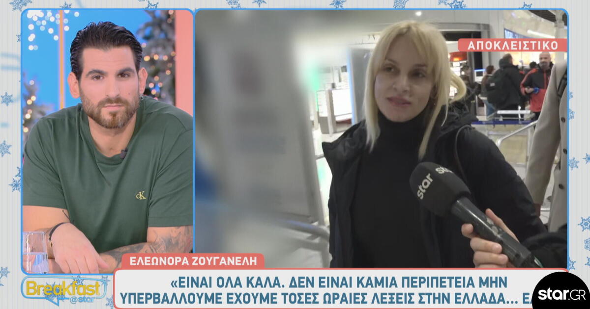 Ο Πάνος Παπαδόπουλος συνάντησε την τραγουδίστρια με τον σύντροφό της, Νίκο Συρίγο, στο αεροδρόμιο Ελ. Βενιζέλος. Απαντώντας για την... περιπέτεια που είχε απάντησε: «Δεν ήταν καμία περιπέτεια. Μην υπερβάλλουμε με τις λέξεις. Έχουμε τόσο υπέροχες λέξεις στην Ελλάδα. Να τις χρησιμοποιούμε σωστά, δεν ήταν περιπέτεια. Έλεος».