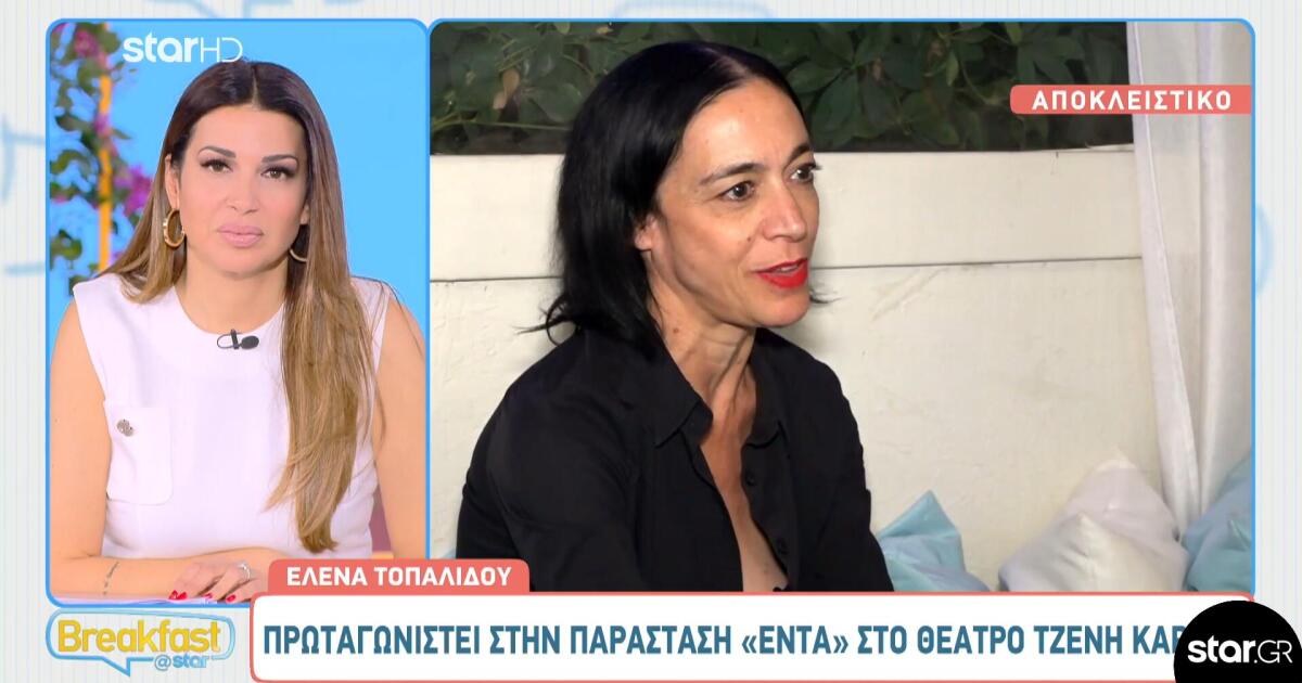 Η Έλενα Τοπαλίδου μίλησε στο Breakfast@Star για τη θεατρική παράσταση «Έντα», στην οποία πρωταγωνιστεί, καθώς για μία ταινία του εξωτερικού, η οποία θα κυκλοφορήσει το προσεχές διάστημα, στην οποία συμμετέχει η ίδια, καθώς και ο αστέρας του Χόλιγουντ, Νίκολας Κέιτζ.