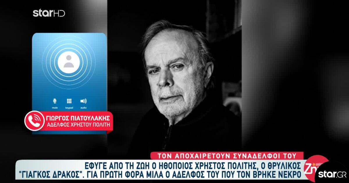 Βαρύ πένθος σκόρπισε στον καλλιτεχνικό κόσμο η είδηση του θανάτου του Χρήστου Πολίτη, ενός από τους πιο εμβληματικούς ηθοποιούς του ελληνικού θεάτρου, κινηματογράφου και τηλεόρασης.