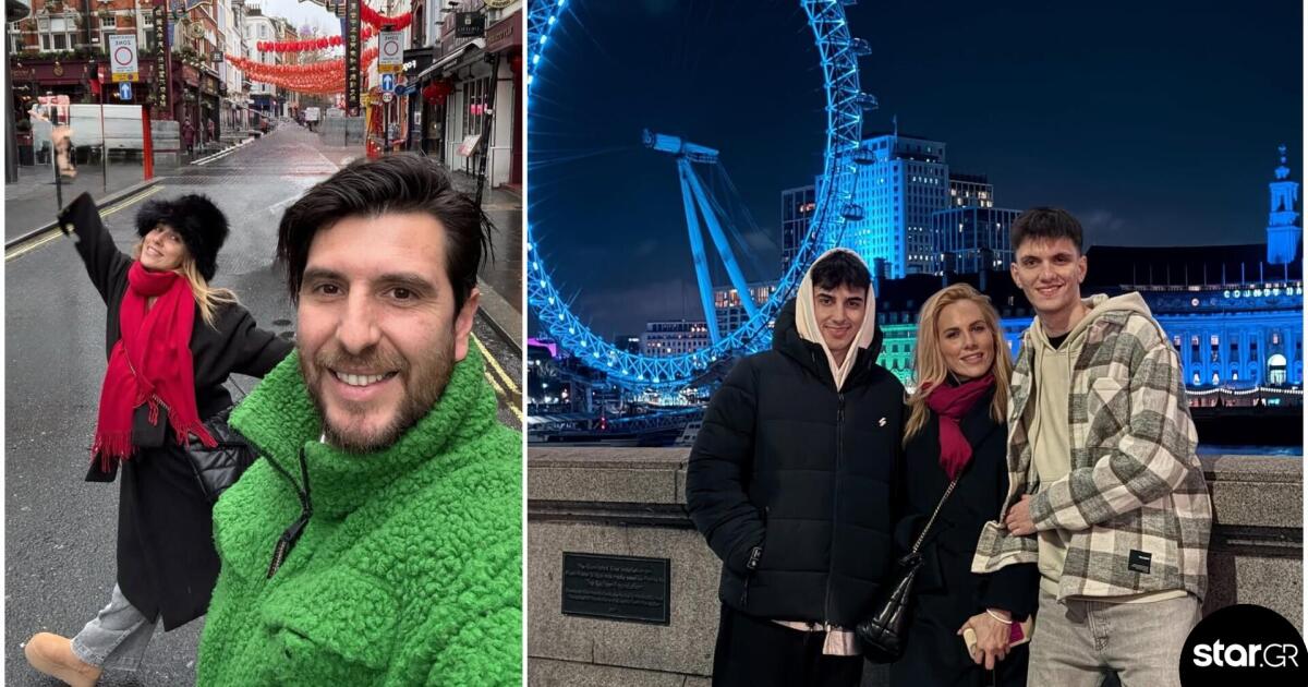 Η ηθοποιός δημοσίευσε φωτογραφίες στο instagram από το ταξίδι τους στο κρύο Λονδίνο. Πόζαρε χαμογελαστή πλάι στα αγόρια της, 21 και 20 ετών, τα οποία απέκτησε από τον γάμο της με τον Κώστα Πηλαδάκη.