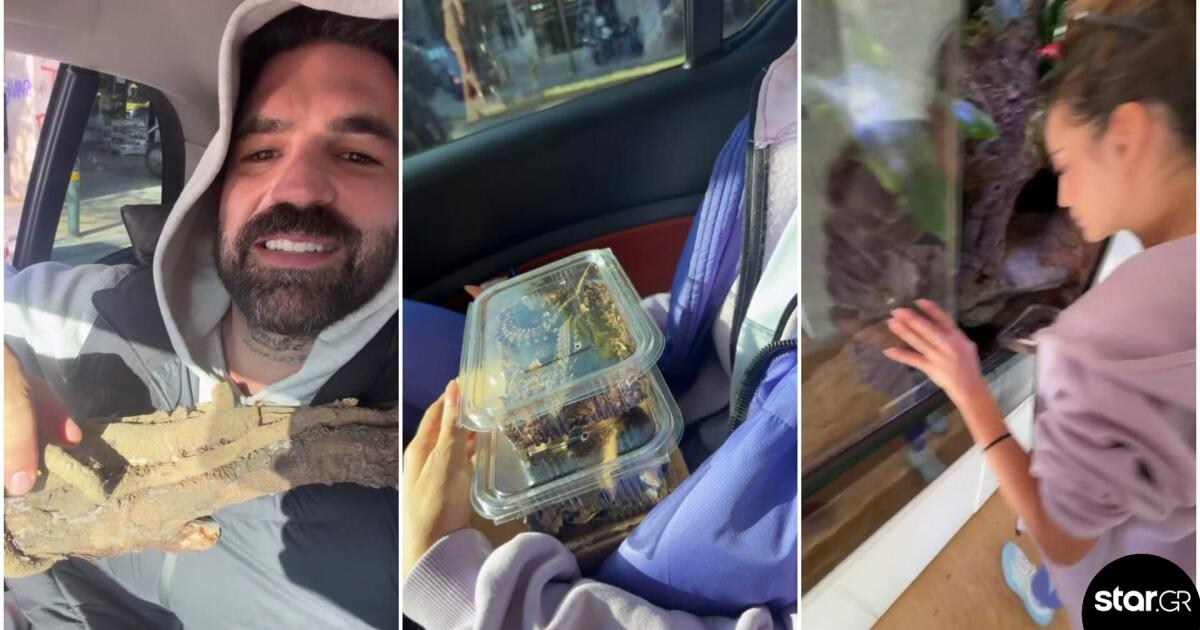 Στη συνέχεια, το ζευγάρι επέστρεψε στο σπίτι του Δημήτρη Αλεξάνδρου και όπως είδαμε στα instastories του, μαζί έβαλαν τα νέα ζωάκια στο terrarium που έχει στο διαμέρισμά του.