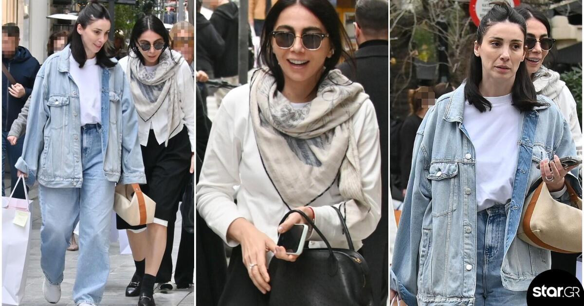 Οι δύο αδελφές, αν κ εντελώς διαφορετικές στο στιλ, είναι πάντοτε ενημερωμένες και stylish. Η Βαλέρια Χοψονίδου επέλεξε ένα total denim look φορώντας ένα oversized τζιν jacket σε ανοιχτή απόχρωση, το οποίο συνδύασε με φαρδύ τζιν παντελόνι και sneakers. Tέλος, η minimal tote bag πρόσθεσε μια επιπλέον στιλιστική πινελιά.