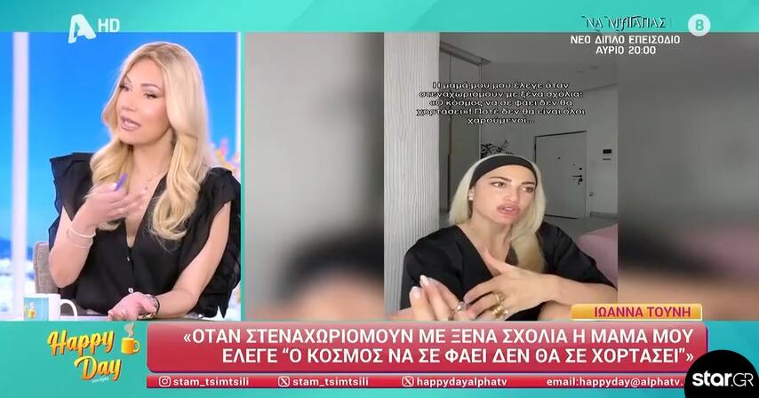 Σήμερα, Τρίτη 14 Απριλίου, οι δηλώσεις αυτές σχολιάστηκαν στην εκπομπή Happy Day, από τη Σταματίνα Τσιμτσιλή και τους συνεργάτες της, με την Τίνα Μεσσαροπούλου να αναρωτιέται τους λόγους που η Ιωάννα Τούνη εστιάζει στα αρνητικά σχόλια, τη στιγμή που η ίδια υποστηρίζει πως δεν την επηρεάζουν.