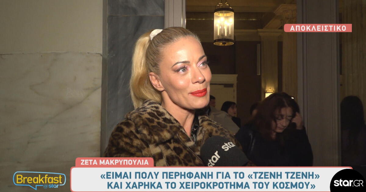 Τη Ζέτα Μακρυπούλια συνάντησε η κάμερα του Breakfast@Star κι ο Γιώργος Βιολέντης, αμέσως μετά την πρεμιέρα της παράστασης Τζένη Τζένη στο Δημοτικό Θέατρο του Πειραιά.