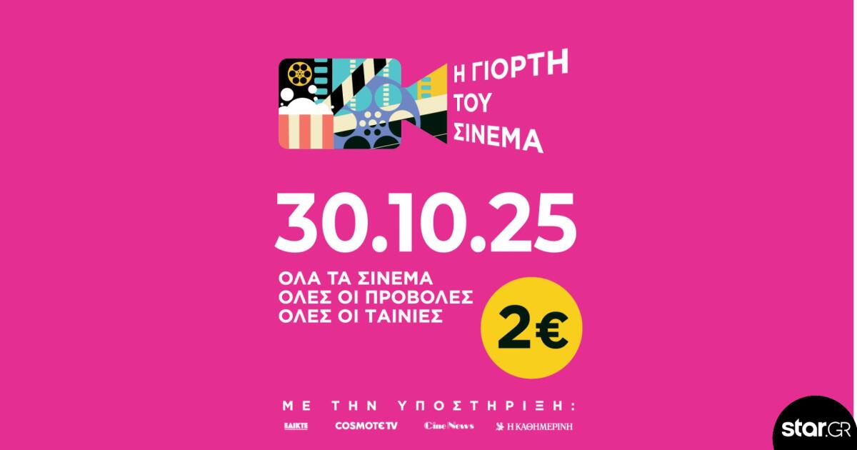 Την Πέμπτη 30 Οκτωβρίου όλη η Ελλάδα γίνεται μια τεράστια κινηματογραφική αίθουσα: σε όλα τα σινεμά της χώρας, όλες οι ταινίες και όλες οι προβολές με ενιαίο εισιτήριο 2€. Η Γιορτή του Σινεμά, μία ιδέα που έγινε θεσμός, έρχεται για τέταρτη συνεχόμενη χρονιά, δίνοντάς μας την ευκαιρία να απολαύσουμε τη μαγεία της μεγάλης οθόνης με μειωμένη τιμή.