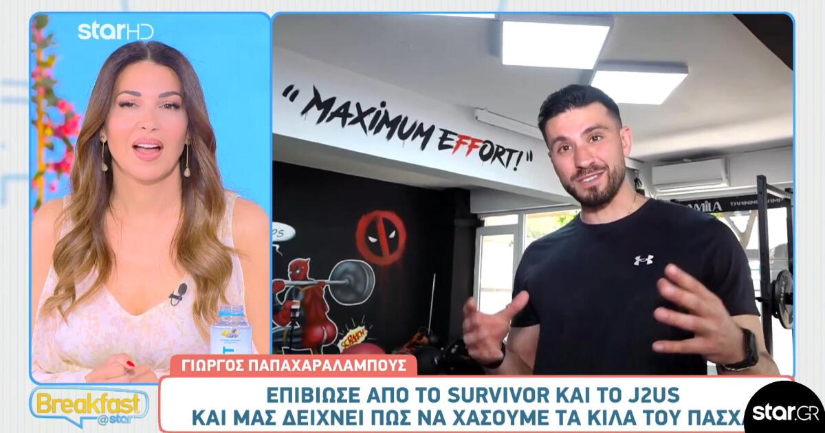 Ο Γιώργος Παπαχαραλάμπους είναι καθηγητής φυσικής αγωγής, με μεταπτυχιακό στην Εφαρμοσμένη Κινησιολογία στις Ένοπλες Δυνάμεις και τα Σώματα Ασφαλείας. Διαθέτει το δικό του στούντιο γυμναστικής και έδειξε στην κάμερα του Breakfast@star τις απαραίτητες ασκήσεις για να χάσουμε τα περιττά κιλά που πήραμε το Πάσχα!