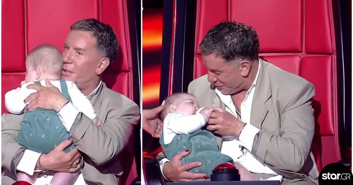 Μια τρυφερή στιγμή εκτυλίχθηκε στο «The Voice», όταν ο Γιώργος Μαζωνάκης πήρε στην αγκαλιά του την 6 μηνών κόρη διαγωνιζόμενης, που βρισκόταν εκείνη την ώρα στη σκηνή.