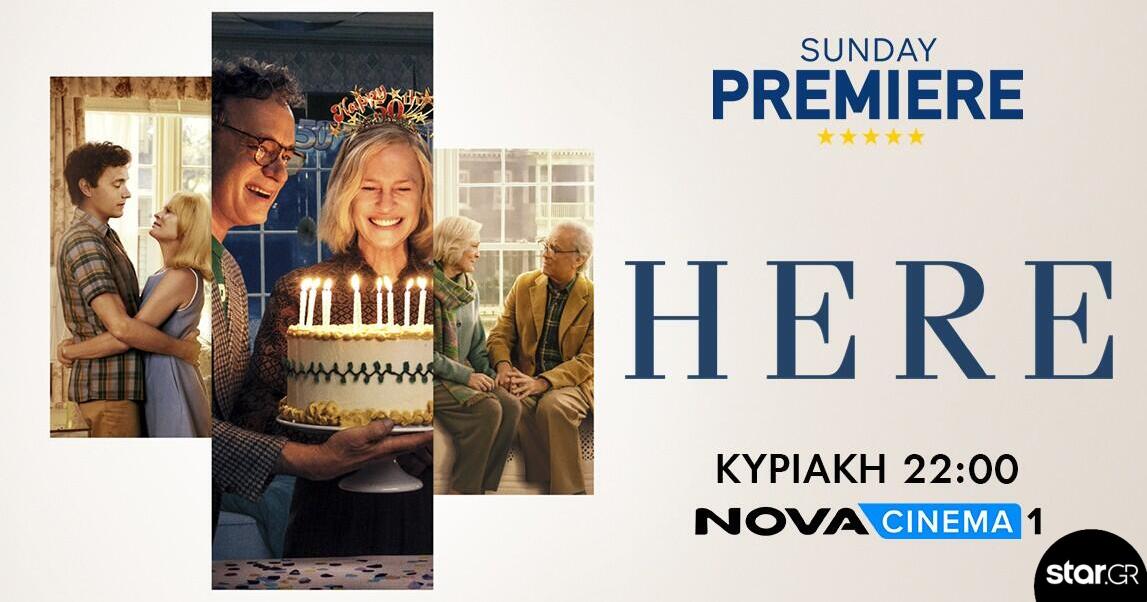 Τη δραματική ταινία «Here» (2024, διάρκειας 99’) με τους Tom Hanks, Robin Wright, Paul Bettany σε σκηνοθεσία του Robert Zemeckis θα απολαύσουν οι σινεφίλ την Κυριακή 19 Οκτωβρίου στις 22:00 στο Novacinema1, στη ζώνη Sunday Premiere της Nova!