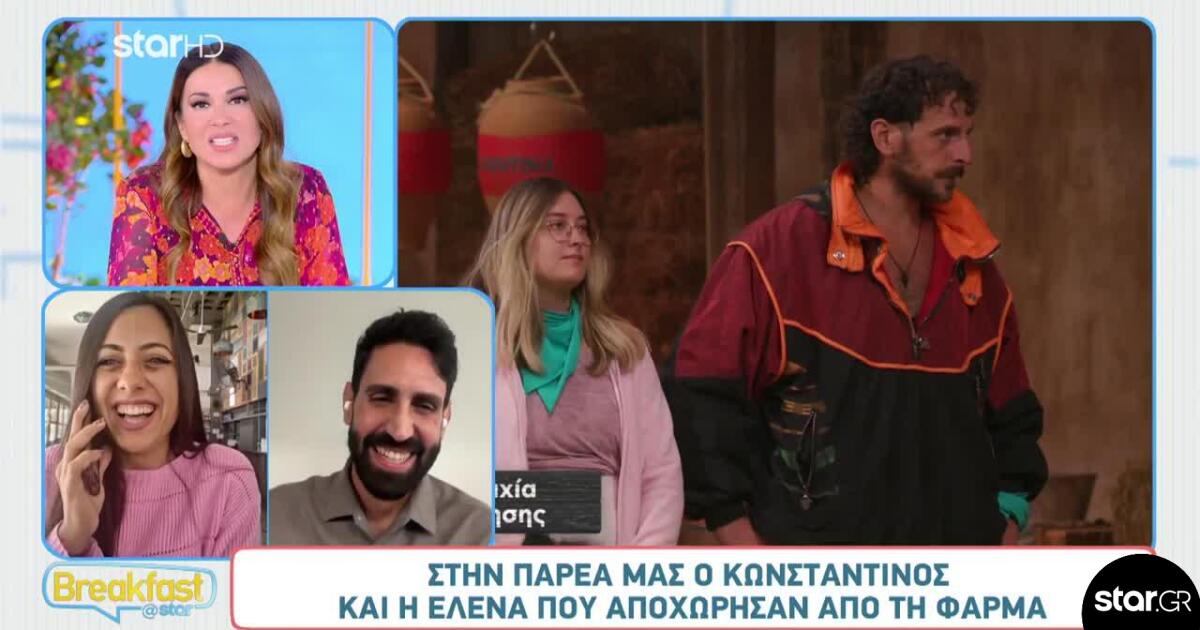 Ο Κωνσταντίνος και η Έλενα, που αποχώρησαν στο χθεσινοβραδινό επεισόδιο της Φάρμας, μίλησαν το πρωί της Πέμπτης 30/10 στην εκπομπή Breakfast@Star.