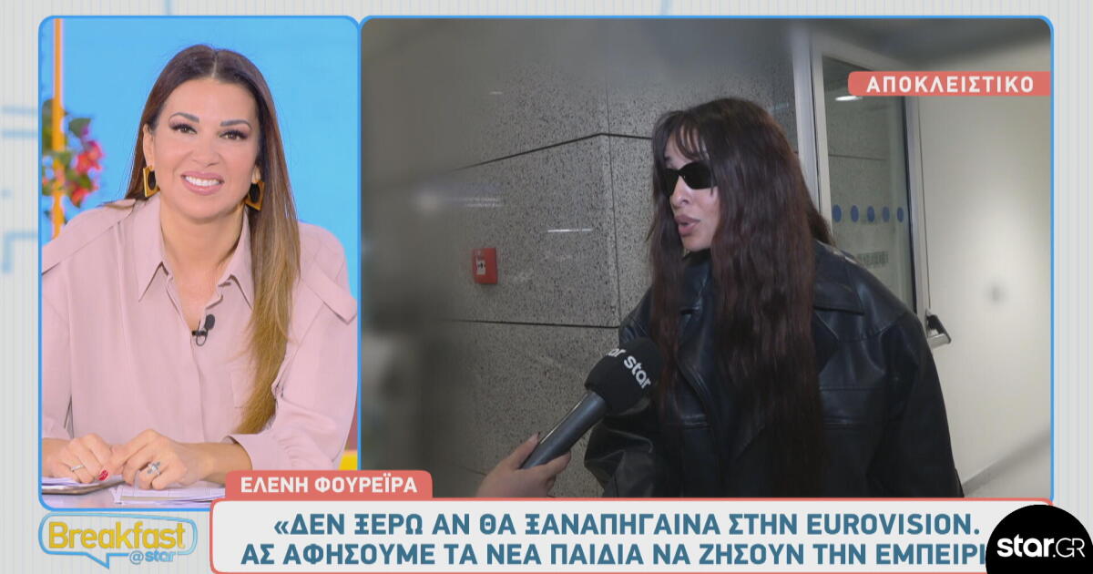 Θα δούμε ξανά δική της συμμετοχή στο μέλλον; «Α, δεν το ξέρω παιδιά, αλήθεια. Να αφήσουμε τα νέα παιδιά να πάνε στην Eurovision να ζήσουν την εμπειρία. Εγώ την έχω ζήσει κι ήταν πάρα πολύ ωραία. Εύχομαι ό,τι καλύτερο σε όποιον βγει», τόνισε η Ελένη Φουρέιρα.