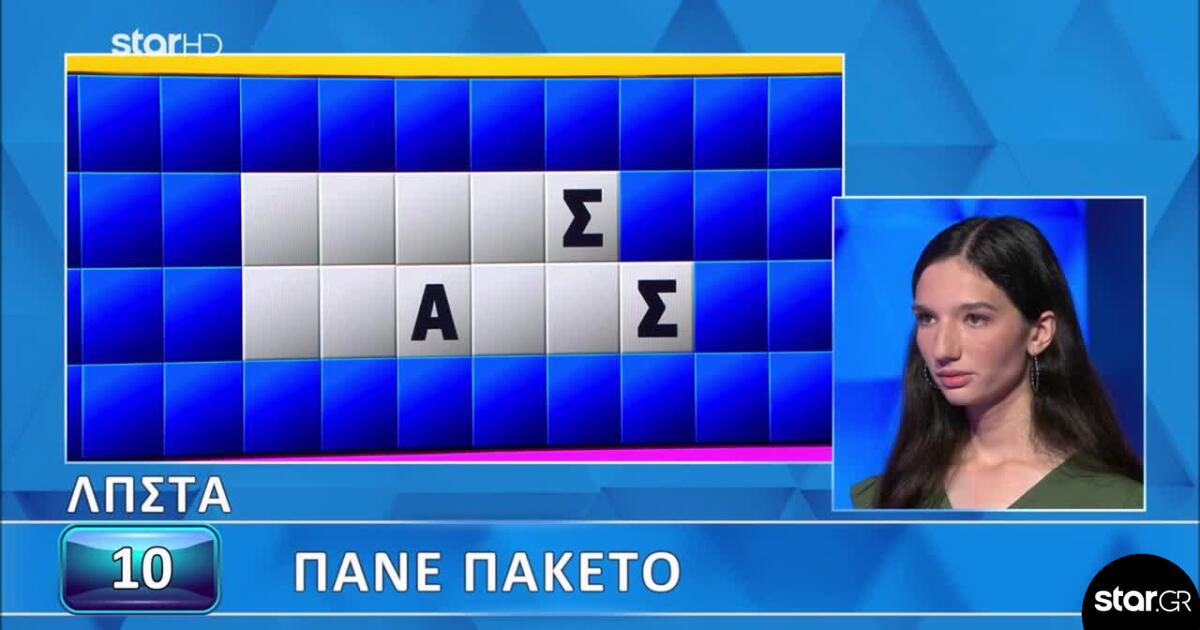 Η κατηγορία ήταν «Πάνε Πακέτο», όπως ανακοίνωσε κι η Νατάσα Κουβελά, με τα σταθερά γράμματα Λ, Π, Σ, Τ, Α να εμφανίζονται στον πίνακα. Η παίκτρια από την πλευρά της είπε το Κ, το Ρ, το Φ, ενώ για φωνήεν επέλεξε το Ο.
