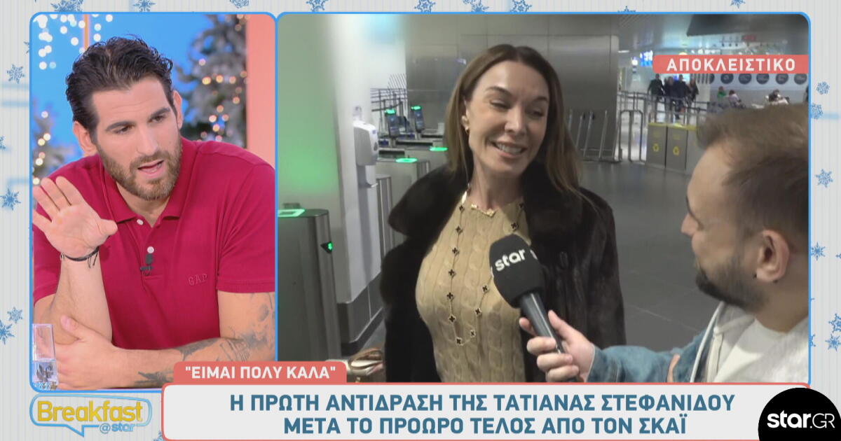 «Τι κάνετε; Καλή σας μέρα! Σας ευχαριστώ πολύ. Θέλω να σας πω τη γλυκιά μου καλημέρα. Πάω τώρα ταξίδι, να είστε καλά. Είμαι μια χαρά», είπε η Τατιάνα Στεφανίδου.