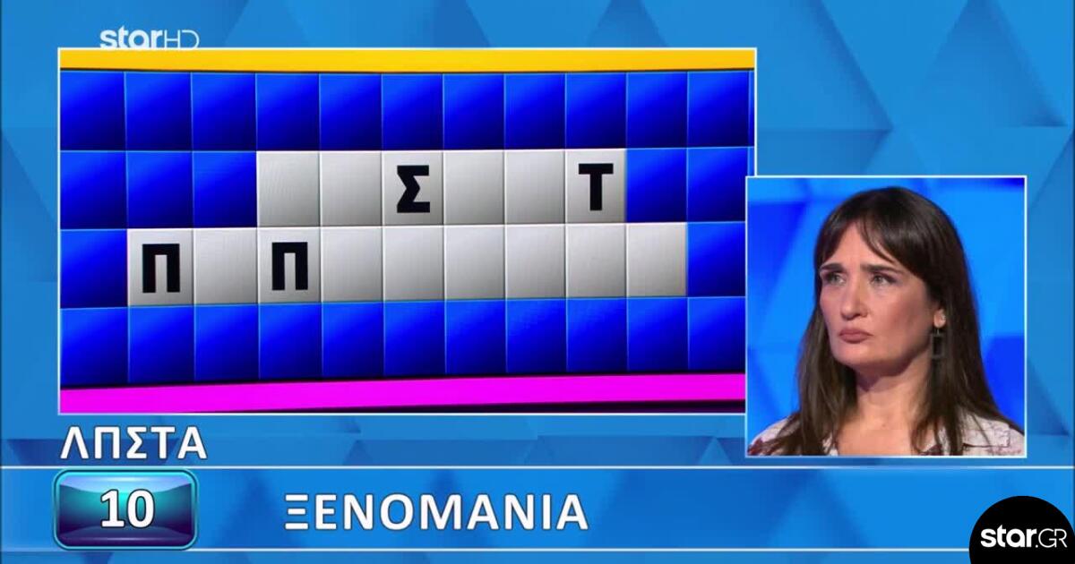 Η κατηγορία ήταν «Ξενομανία» όπως ανακοίνωσε κι η Νατάσα Κουβελά, με τα γράμματα Λ, Π, Σ, Τ, Α να βγαίνουν στον πίνακα. Η παίκτρια από την πλευρά της είπε το Κ, το Ρ, το Μ κι έξτρα σύμφωνο το Ν, ενώ για φωνήεν επέλεξε το Ο.