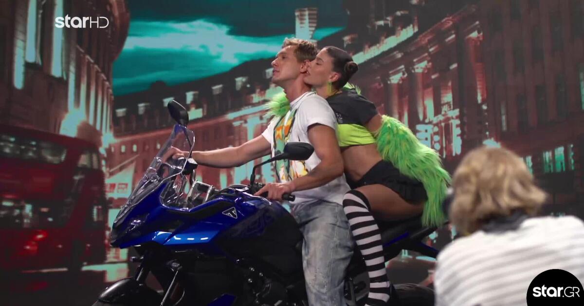 Ο Έντουαρντ προσπαθούσε να κρατήσει τον ρυθμό, ενώ η Ειρήνη έδινε απόλυτη ενέργεια στο σετ, με έντονη εκφραστικότητα και δυναμισμό. «Με κρατάς σίγουρα;» τον ρώτησε την ώρα που ανέβαινε πάνω στη μηχανή, με εκείνον να την καθησυχάζει: «Ναι, μην αγχώνεσαι».