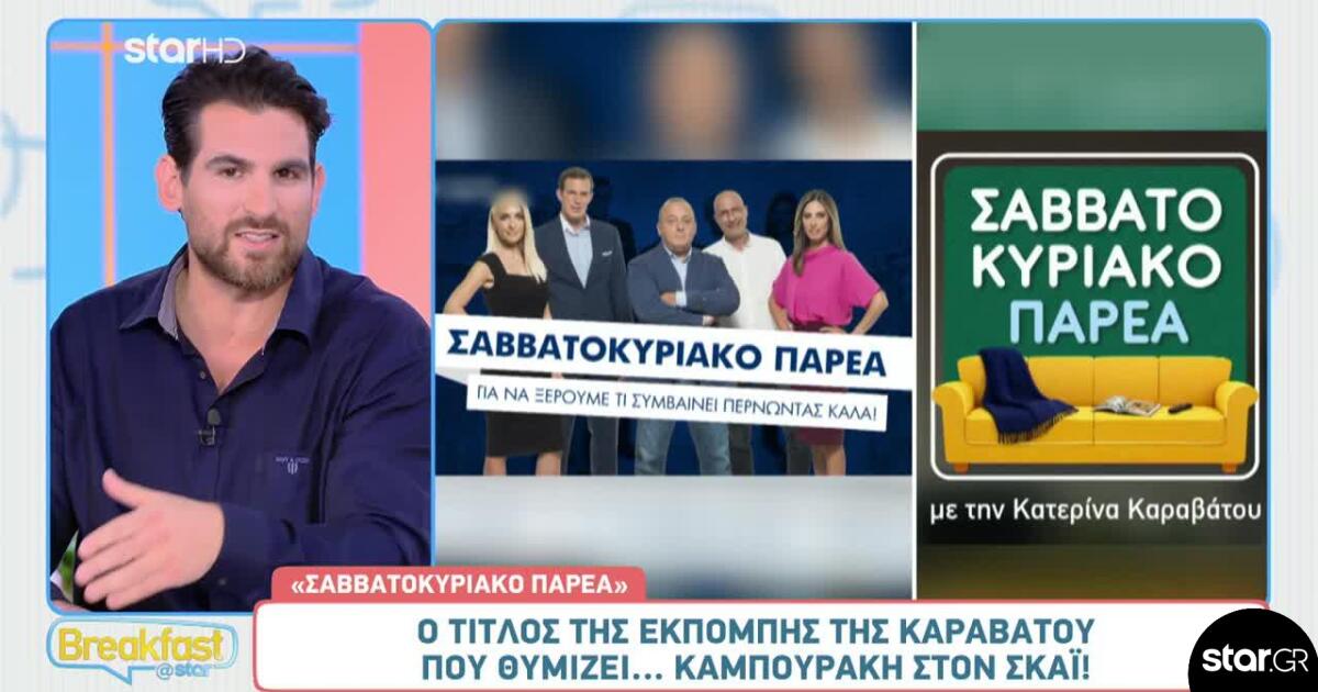 Κυκλοφόρησε το trailer για τη νέα εκπομπή της Κατερίνας Καραβάτου. Μετά το κόψιμο της εκπομπής της Ελένης Τσολάκη, το Πρωινό ΣΚ μετατρέπεται σε Σαββατοκύριακο Παρέα.
