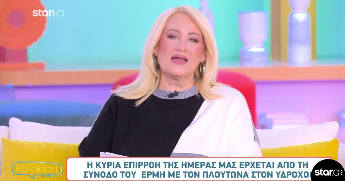 Η έγκριτη αστρολόγος περιέγραψε το κλίμα των ημερών ως αρκετά ιδιόμορφο, τονίζοντας ότι η είσοδος των πλανητών στον Υδροχόο συνοδεύεται από απαιτητικές όψεις με τον Πλούτωνα. Όπως χαρακτηριστικά ανέφερε: «Είναι λίγο περίεργες αυτές οι μέρες, το έχετε καταλάβει, σας είπα ότι, όπως μπαίνουν οι πλανήτες στον Υδροχόο, η πρώτη όψη που κάνουν είναι με τον Πλούτωνα. Δεν είναι και πολύ ευχάριστες οι συναντήσεις αυτές. Σήμερα, την τιμητική του έχει ο Ερμής. Αυτός κάνει τη συνάντηση».