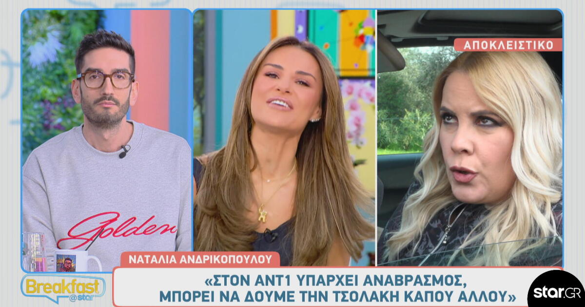 Τη Ναταλία Ανδρικοπούλου συνάντησε ο Πάνος Παπαδόπουλος με την κάμερα του Breakfast@Star, με τη δημοσιογράφο να σχολιάζει τα τηλεοπτικά πρόσωπα και πράγματα, το... beef ανάμεσα στη Σίσσυ Χρηστίδου και τον Γιώργο Λιάγκα, αλλά και την... επιστροφή της Ελένης Τσολάκη στον ΑΝΤ1 μετά το τέλος της εκπομπής της!