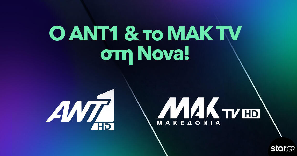 Από σήμερα όλοι οι συνδρομητές της Nova θα απολαμβάνουν το αγαπημένο πρόγραμμα του ANT1 σε ανάλυση HD (στη θέση 8 μέσω Internet με δυνατότητα catch-up 7 ημερών και στη θέση 108 μέσω δορυφόρου) και του MAK TV σε ανάλυση HD (στη θέση 12 μέσω Internet με δυνατότητα catch-up 7 ημερών και 112 μέσω δορυφόρου) όποτε εκείνοι θέλουν και όπου και αν βρίσκονται.